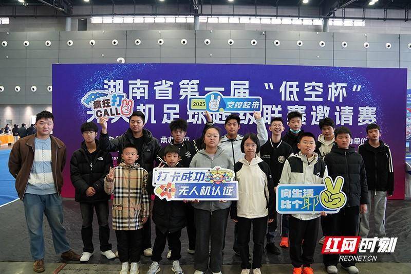 部分参赛选手在现场面影。红网时刻新闻11月24日讯(记者 符洹雨 通信员 钟雨薇)11月22日至23日,湖南省第一届“低空杯”无东说念主机足球超等联赛邀请赛在长沙海外会展中心获胜举办。赛事以“科技赋能低空 通顺烽火设想”为主题,眩惑了全省近50支队伍、近200名选手参赛。来自全省高职组与青少年组的选手们以无东说念主机为笔、以灵巧为墨,于顽固低空赛场中张开了一场科技与体能、战略与互助的精彩较量,为湖南低空经济发展与科技体育交融写下了灵活篇章。