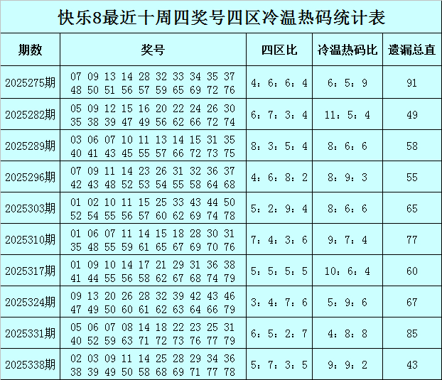四区冷码:当今四区有2个冷码:75、80,上周四该区莫得出现冷码,最近5周四该区冷码解冻9个,冷码解冻迹象比拟瓦解,本周四慎重该区冷码75解冻。